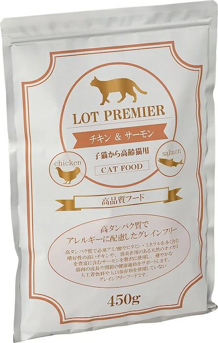 ロットプレミア キャットフード チキン&サーモン 450g 子猫~高齢猫 グレインフリー 4580624500217 | OTTO ANIMAL HEALTH|症状別カテゴリーでペットフード選びをシンプルに
